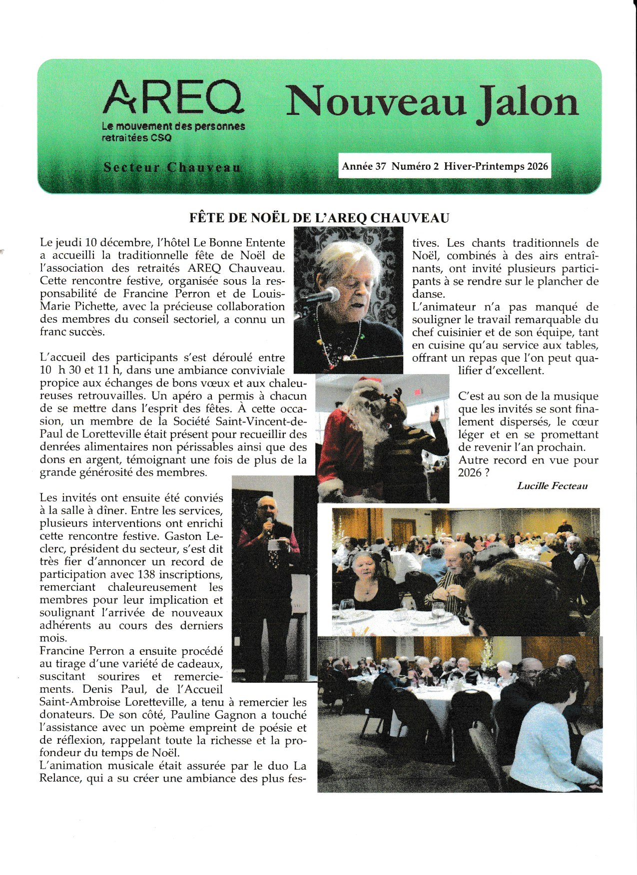 Le bullletin d’information de l’AREQ secteur Chauveau est publié trois fois par année et transmis à l’ensemble des membres par courriel ou par la poste